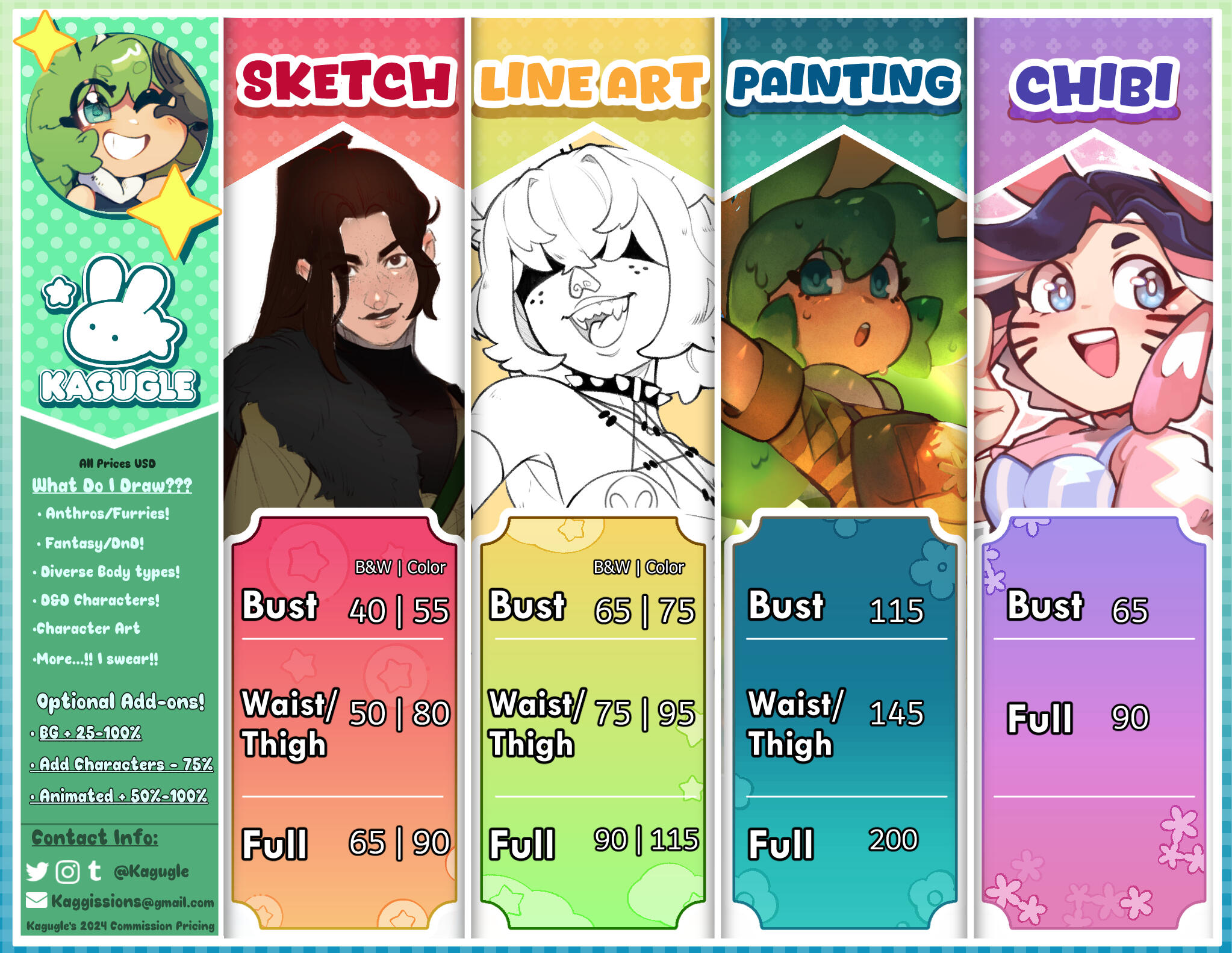 If you have any questions or concerns, please feel free to reach out to me over your preferred method of contact!As the Artist, I may make edits to this document as I see fit.